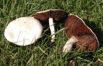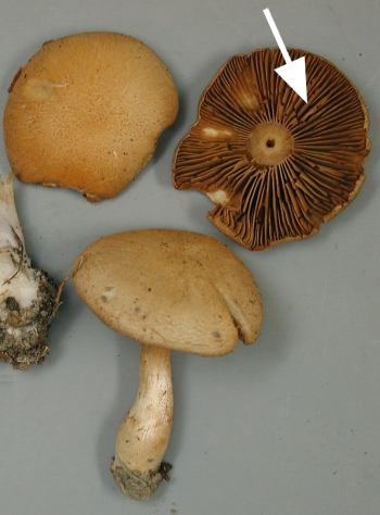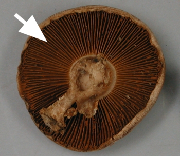 Gills usually rusty brown (see other arrows)