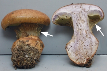 Webby cortina over gills (see arrows!)