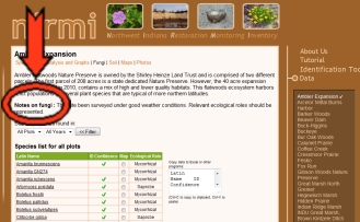 To see if a site has a list of fungi, select a site