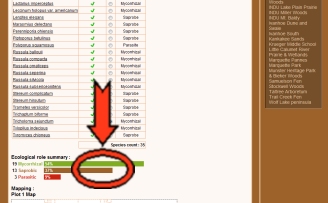 ![]() This brings up a species list similar to the basic plant species list, and includes the same options for viewing spatial information. Directly below the list is a bar graph indicating the relative prevalence of each major ecological role. Please note the weather conditions indicated at the top of this list. Fungi are fickle; a site that has only been surveyed during "poor" or "fair" weather conditions will have a less representative sampling than a site that has been surveyed in "good" or "excellent" weather conditions (these classifications take into account precipitation, habitat type, and time of year). ![]() ![]() ![]() << Back to main tutorial page