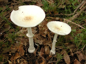 An Exception: Tricholoma caligatum, pictured below, is a Mutualist with oak trees. Note the dark scaliness below the prominent ring.